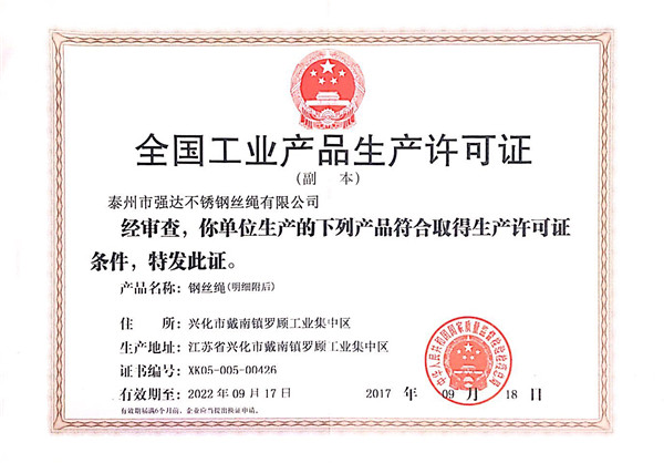 您好,歡迎訪問泰州市強達不銹鋼絲繩有限公司官網!